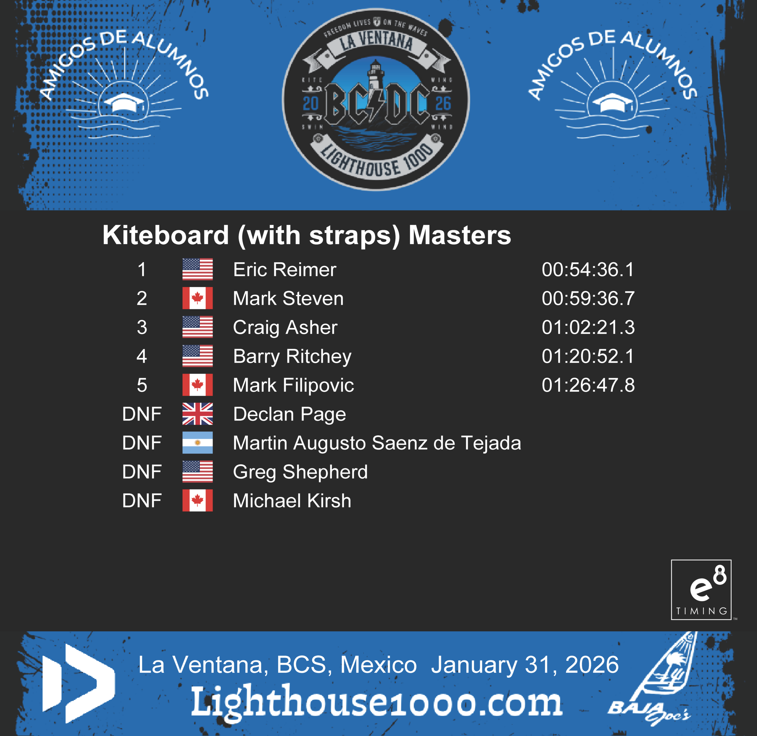 E8 Timing official Lighthouse 1000 Race Results